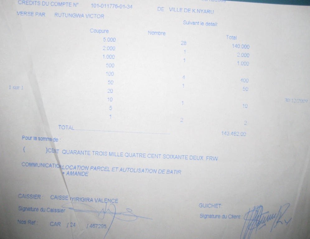 document type Payment receipt (kigali private distric land)